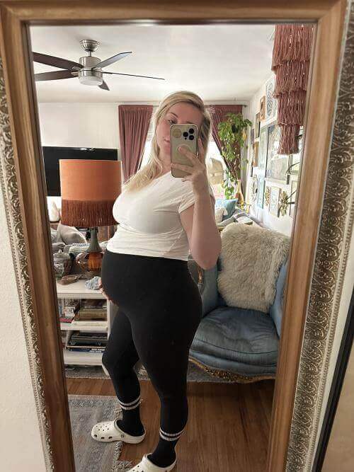 "These leggings have been a pregnancy essential for me. I no longer spend hours trying to figure out what to wear that will fit and look stylish! Super comfortable, will be buying more!"