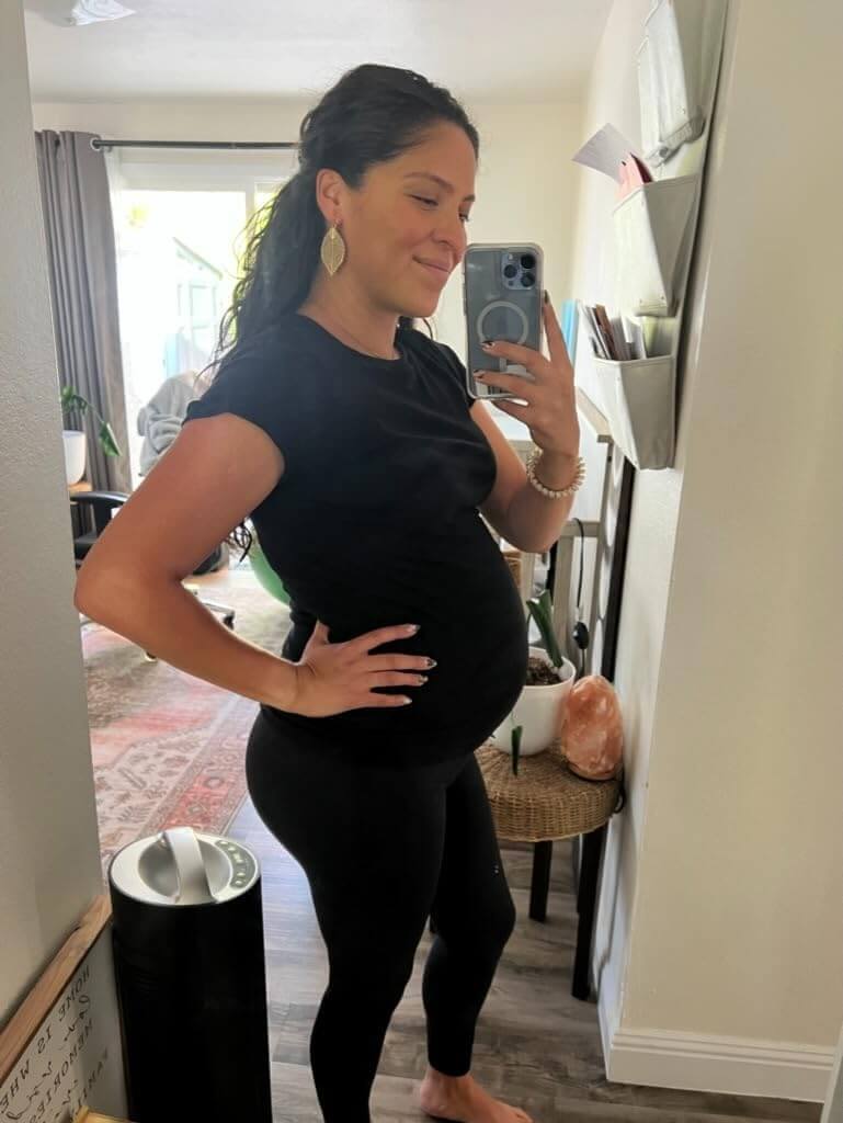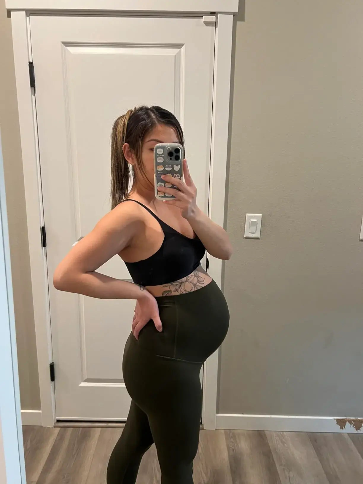 “I’m in my third trimester and these leggings have been a total game changer. They move with me, aren’t see-through, and the belly band comes right up to my bra which I love. Bonus — they even give my bum a little lift!”